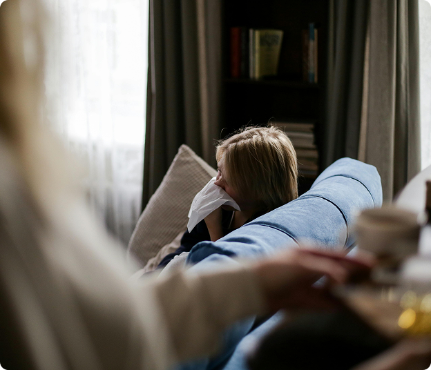 We see people with aeroallergy syndrome who are tired or run down, who have a stuffy congested nose or sinus pain, headaches or sore throats, a cough or sniffles. We also see people whose eczema has flared up, with post nasal drip that leads to throat clearing, or whose asthma is less well controlled in some seasons or places. But most commonly, aeroallergy syndrome shows up as a runny nose, itchy or watery eyes, or sneezing.
